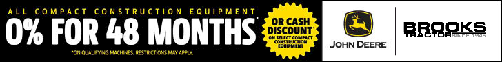 CCE 0% for 48 Months Special: Act now to lock in this limited-time financing offer on the machines you rely on to get the job done. Offer valid on qualifying purchases made until April 30, 2026, or until terminated. Eligible equipment includes new John Deere CCE Equipment. Contact your local Brooks Tractor for more information.